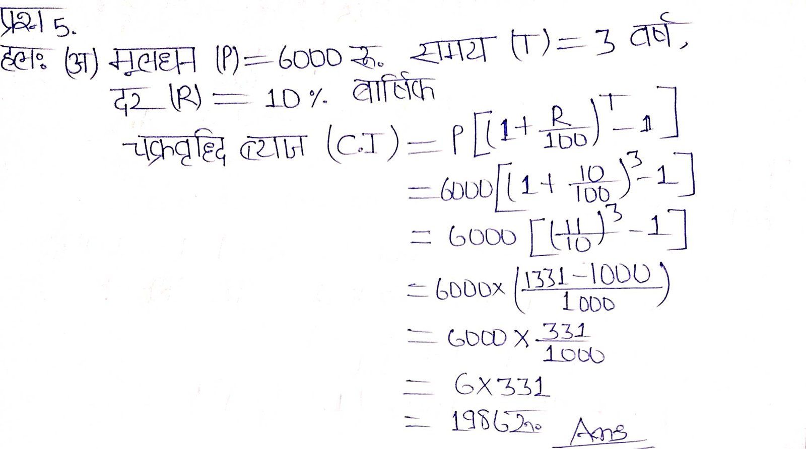 प्रश्न 5. चक्रवृद्धि ब्याज ज्ञात कीजिए-