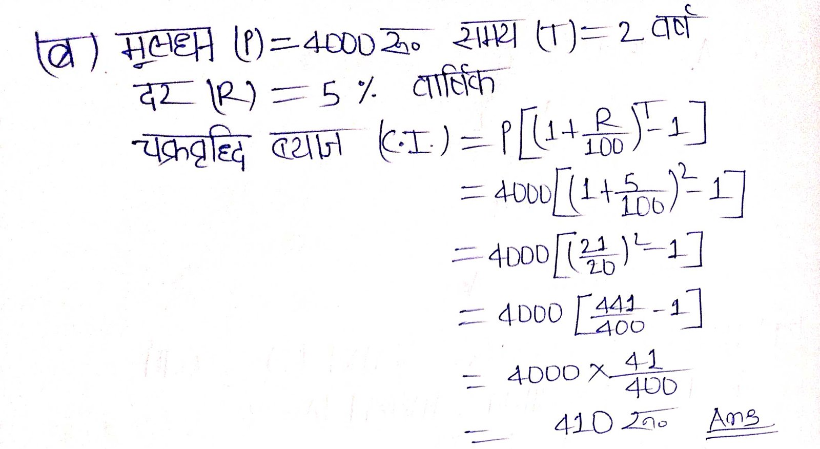 ब. 4000 रु. पर 2 वर्ष के लिए 5 प्रतिशत वार्षिक ब्याज की दर से।