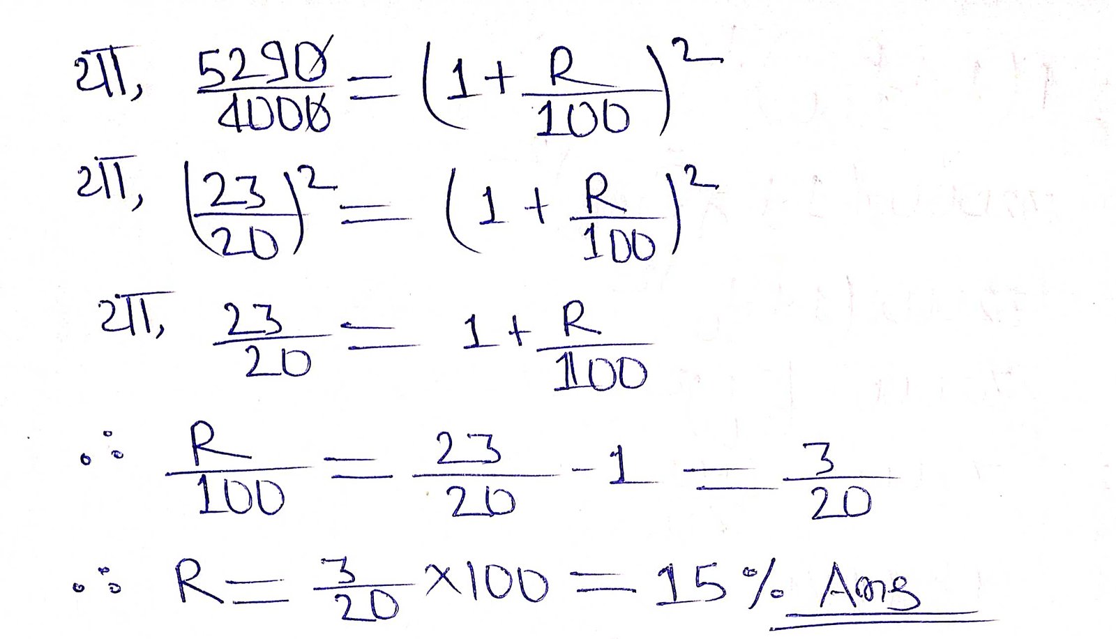 प्रश्न 7. कितने प्रतिशत वार्षिक ब्याज की दर से 4000 रु. 2 वर्ष में 5290 रु. हो जाता है।