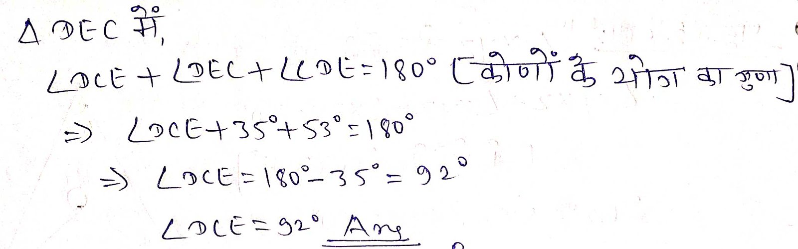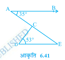 प्रश्न 3. आकृति में, यदि AB || DE ∠BAC = 35° और ∠CDE = 53° है, तो ∠DCE ज्ञात कीजिए।