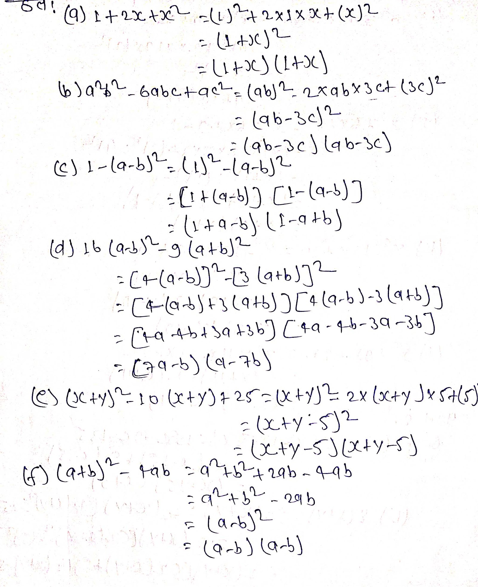 प्रश्न 1. निम्नलिखित व्यंजकों का गुणनखंड ज्ञात कीजिए-
