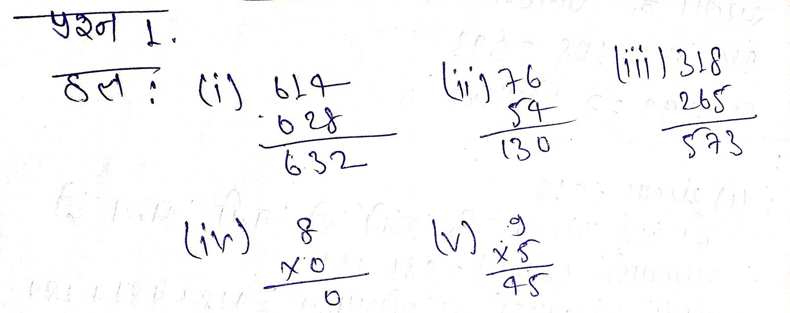 प्रश्न1. उचीत संख्या सेे खाली जगह को भरे ।