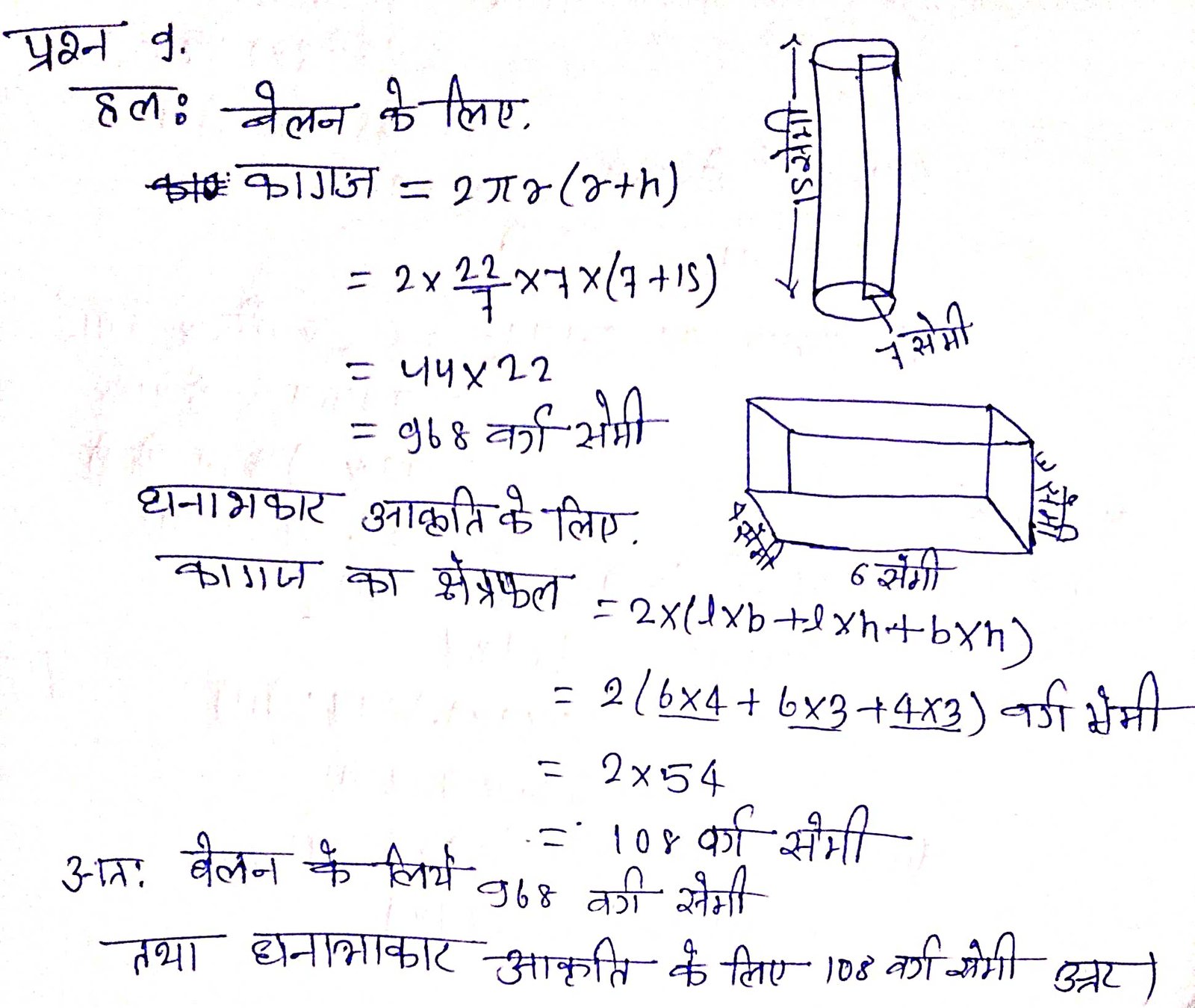 प्रश्न 9. यदि आपको इन आकृतियों को कागज से पूरा-पूरा ढंकना हो तो कम से कम कितने कागज की आवश्यकता होगी?