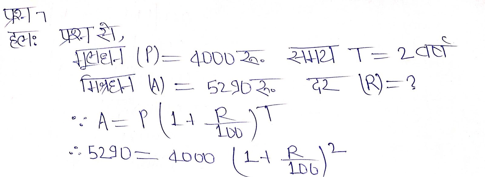 प्रश्न 7. कितने प्रतिशत वार्षिक ब्याज की दर से 4000 रु. 2 वर्ष में 5290 रु. हो जाता है।