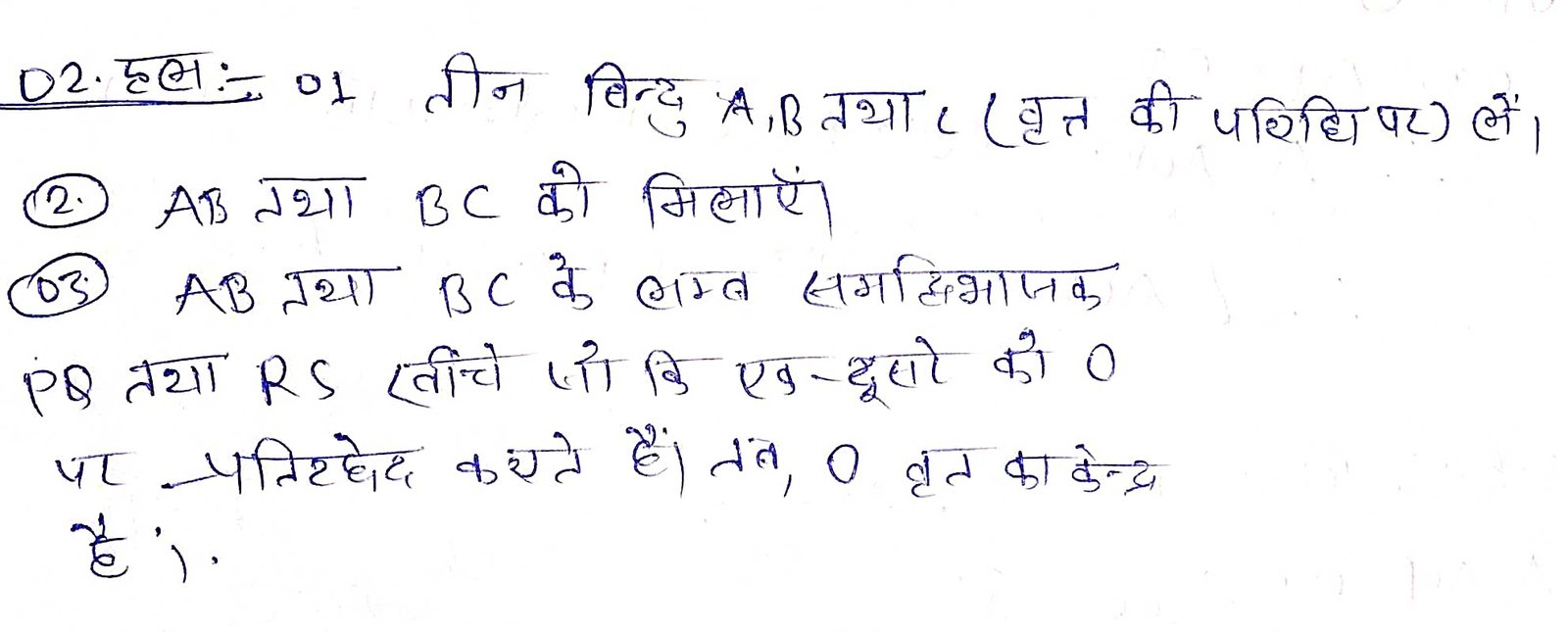 प्रश्न 2. मान लीजिए आपको वृत्त दिया है। एक रचना इसके केन्द्र को ज्ञात करने के लिए दीजिए।