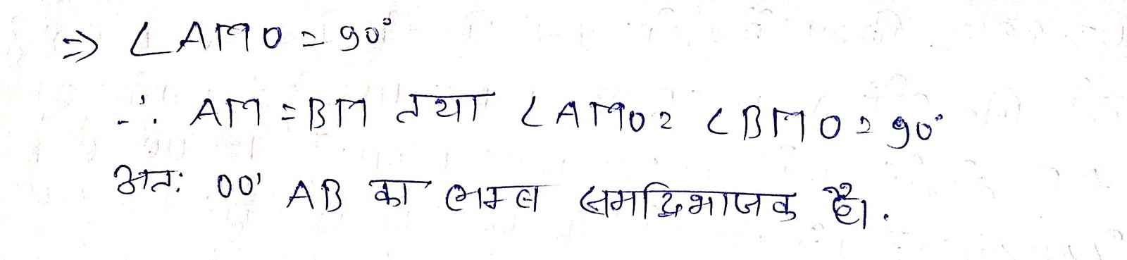 प्रश्न 3. यदि दो वृत्त परस्पर दो बिन्दुओं पर प्रतिच्छेद करें, तो सिद्ध कीजिए कि उनके केन्द्र उभयनिष्ठ जीवा के लम्ब समद्विभाजक पर स्थित है।