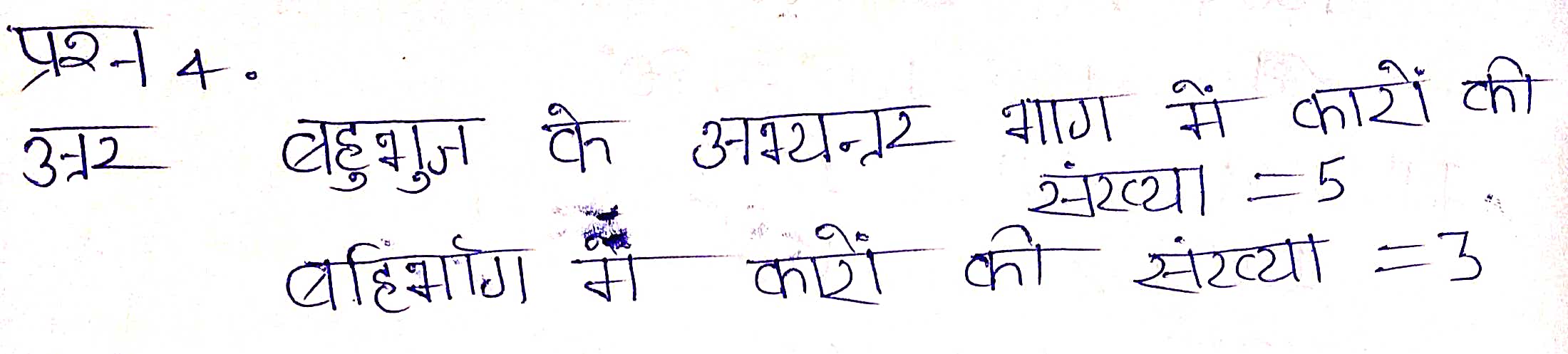 प्रश्न 6. एक बहुभुज के अन्तःकोणों के मापों का योग-540″ है उसमें कितनी भुजाएँ हैं? बताइए?