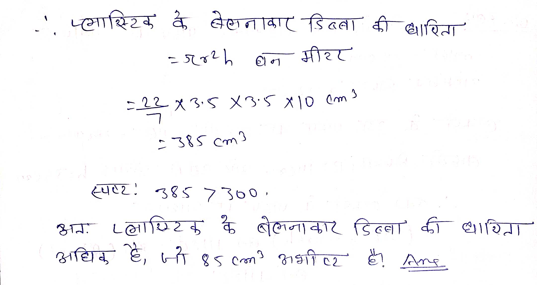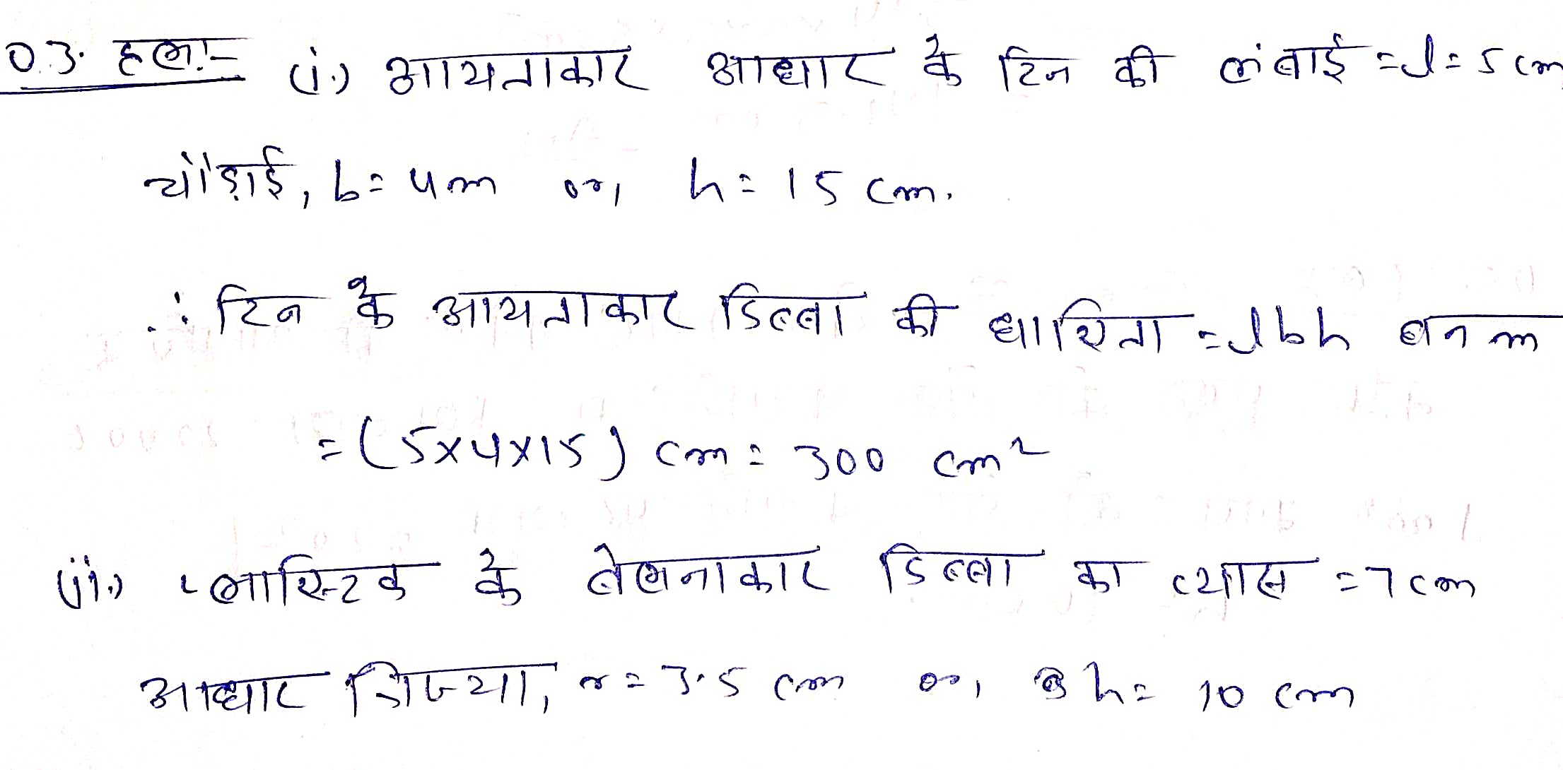 (ii) व्यास 7 cm वाले वत्तीय आधार और 10 cm ऊँचाई वाला एक प्लास्टिकका बेलनाकार डिब्या। किस डिब्बे की थारिता अधिक है और कितनी अधिक है?