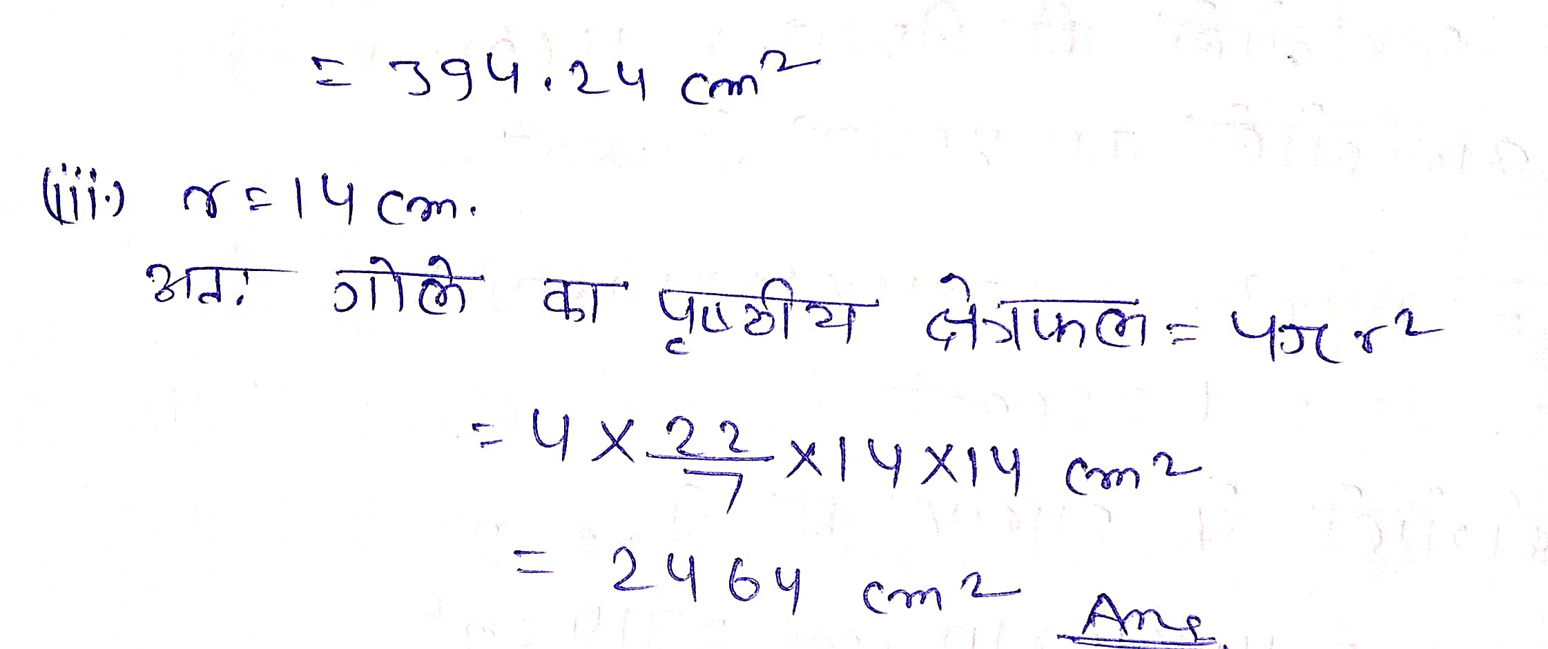 प्रश्न 1. निम्न त्रिज्या वाले गोले का पृष्टीय क्षेत्रफल ज्ञास कीजिए।