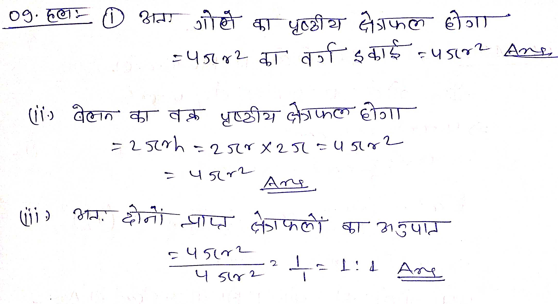 (i) गोले का पृष्ठीय क्षेत्रफल