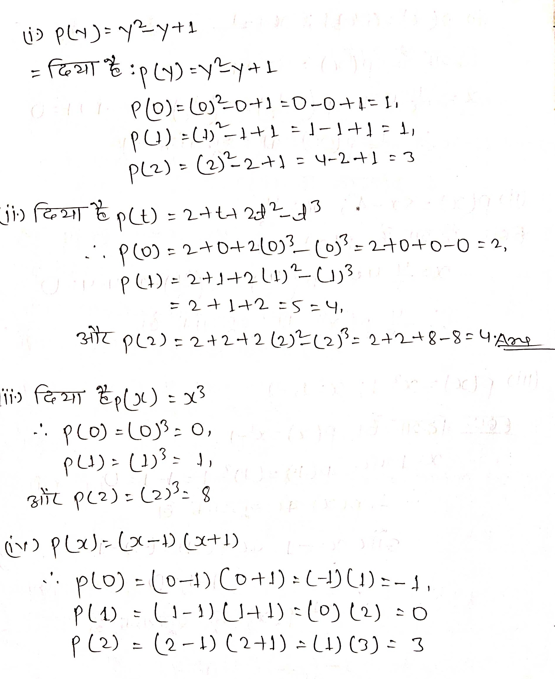 प्रश्न 2. निम्नलिखित बहुपदों में से प्रत्येक बहुपद के लिए P(0), p(1) और p(2) ज्ञात कीजिए