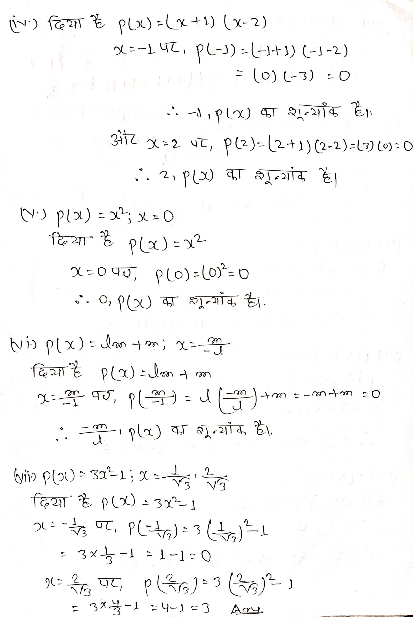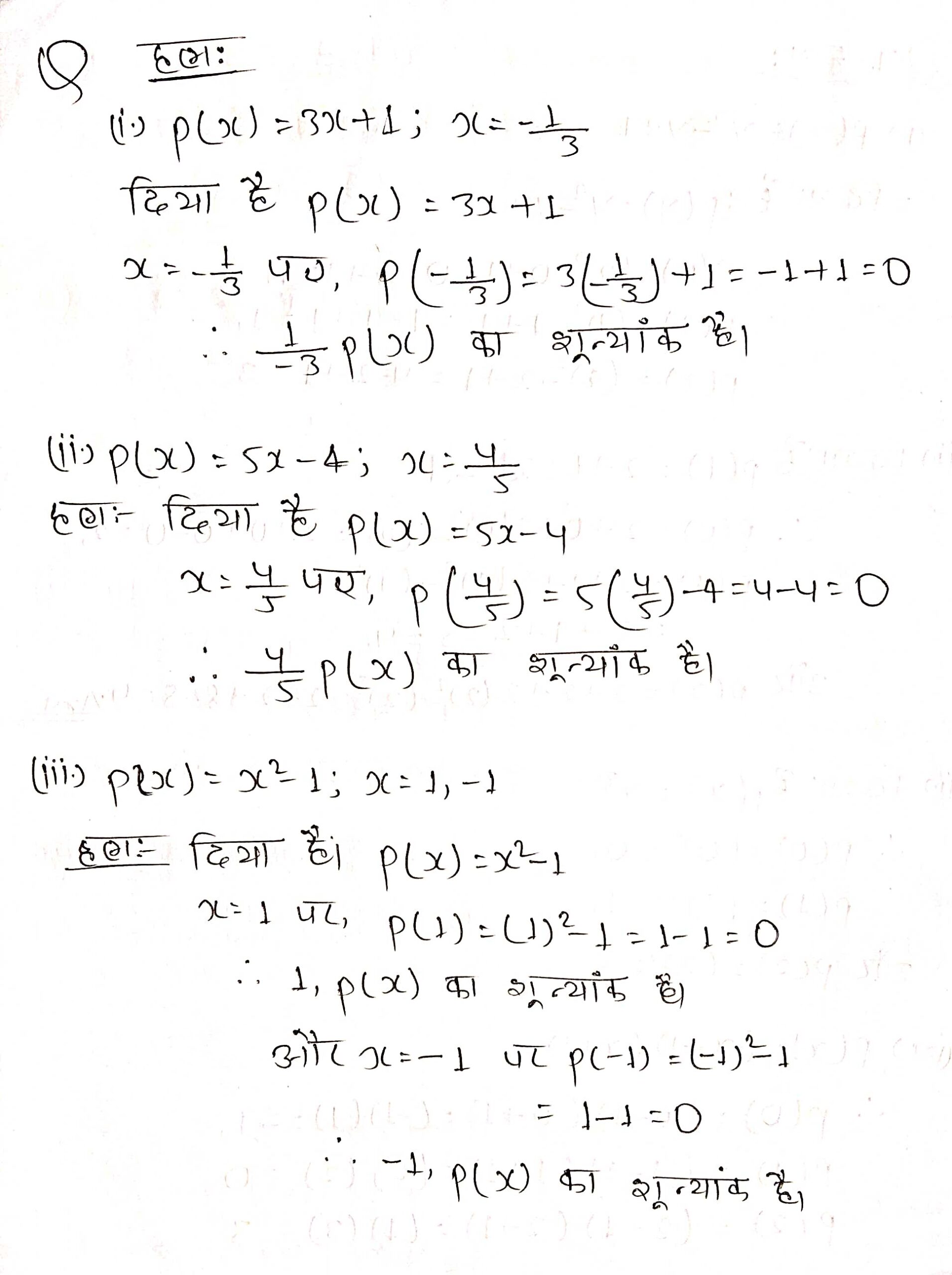 प्रश्न 4. निम्नलिखित स्थितियों में से प्रत्येक स्थिति में बहुपद का शून्यक ज्ञात कीजिए
