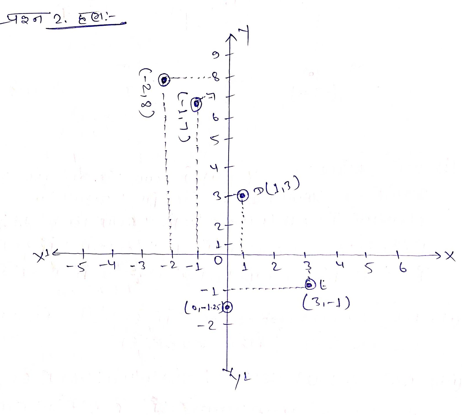 प्रश्न 1. किस चतुर्थांश में या किस अक्ष पर बिन्दु (-2, 4), (3, -1),(-1, 0) (1, 2) और (-3, -5) स्थित है?