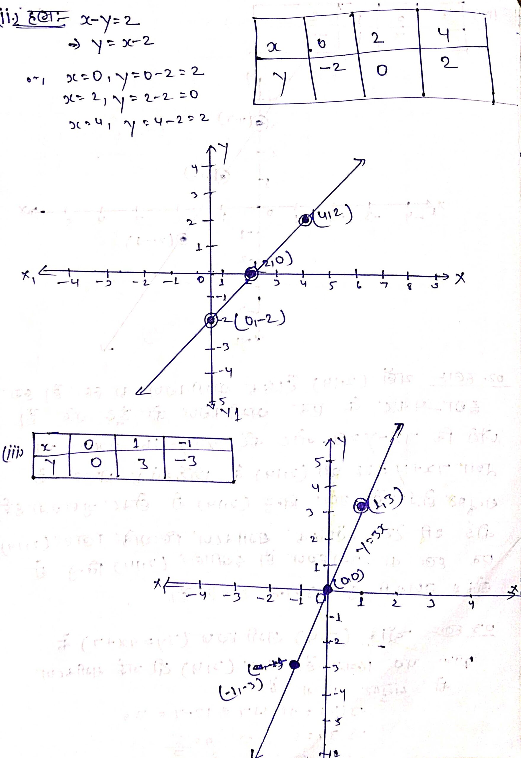प्रश्न 1. दो चारों वाले निम्नलिखित रैखिक समीकरणों में से प्रत्येक का आलेख खींचिए