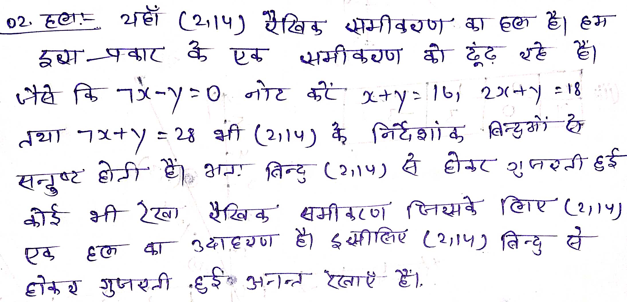 प्रश्न 2. बिंदु (2,14) से होकर जाने वाली दो रेखाओं के समीकरण लिखिए। इस प्रकार की और कितनी रेखाएँ हो सकती हैं, और क्यों?