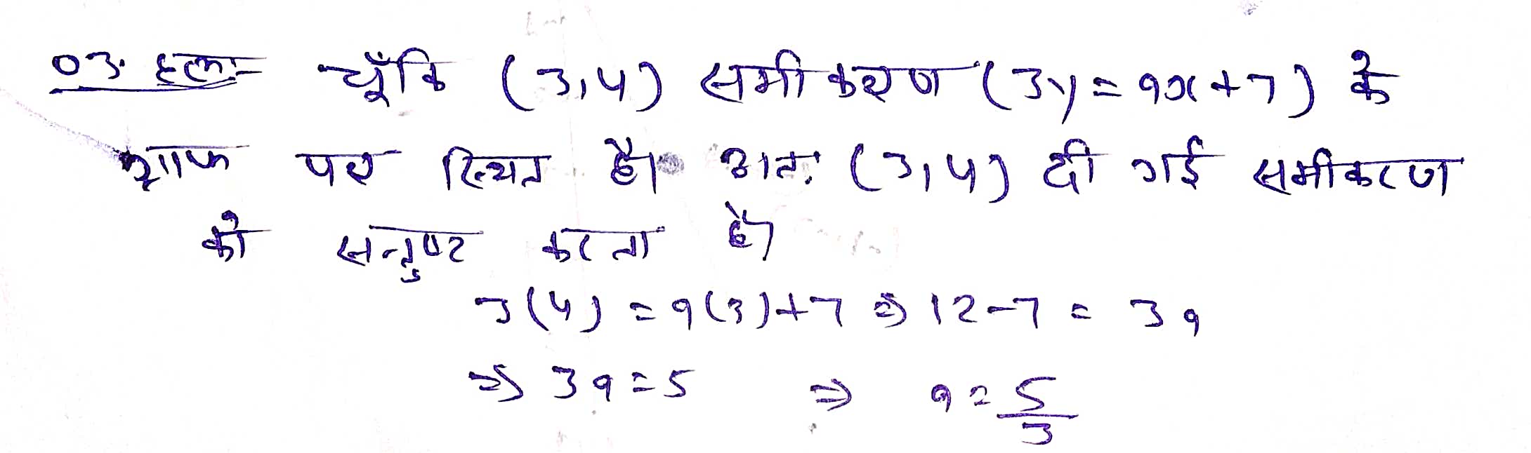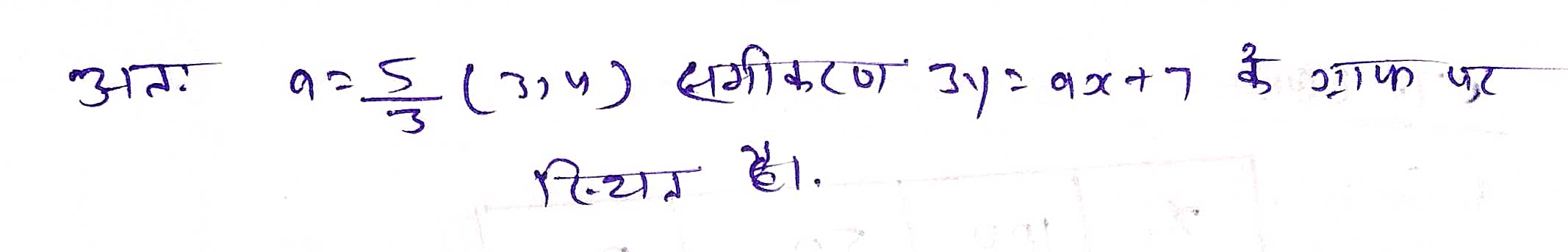 प्रश्न 3. बदि बिन्दासमीकरण 3y = ax + 7 के आलेखा पर स्थित है, तो का मान ज्ञात कीजिए।