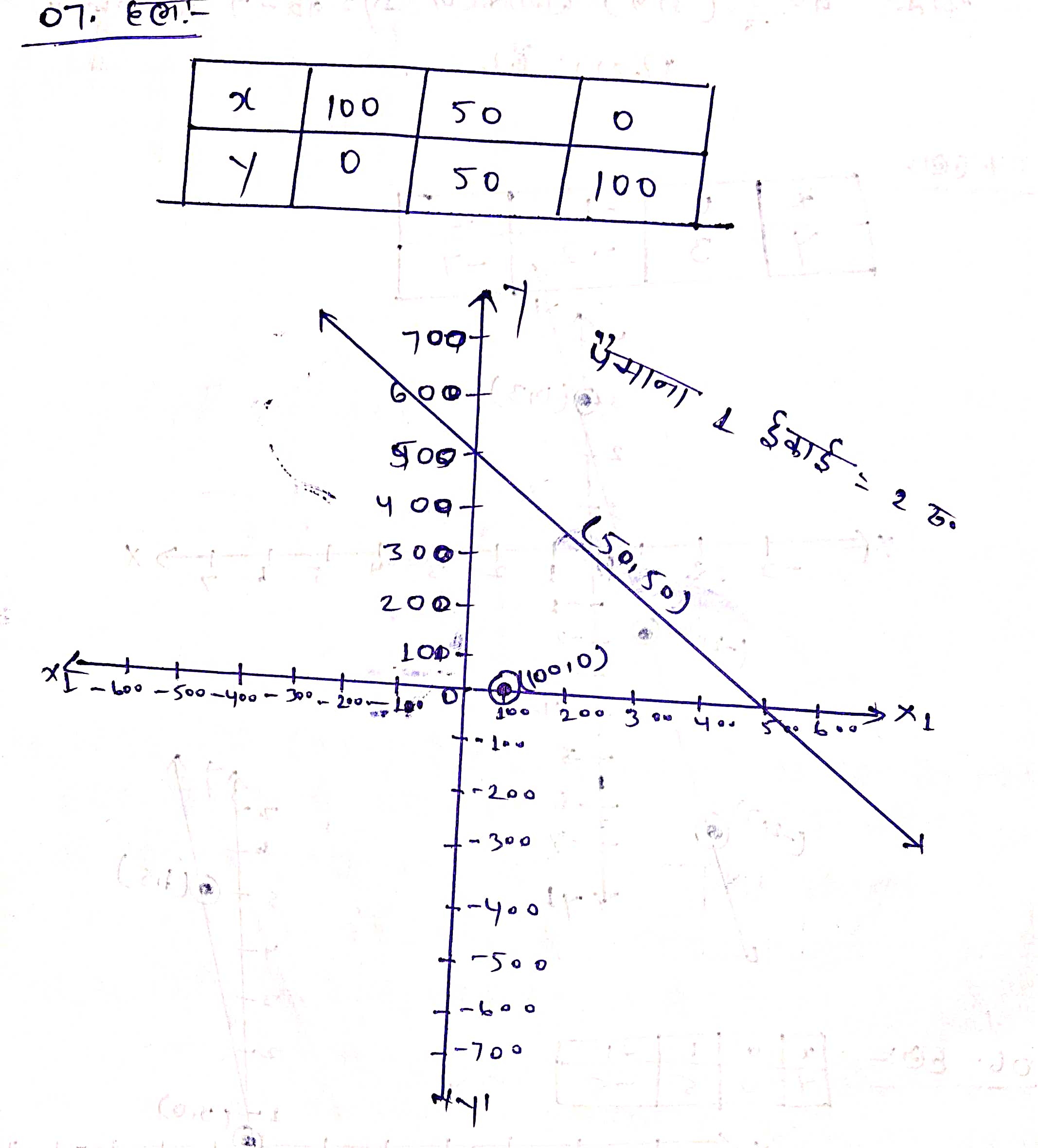 प्रश्न 7. एक विद्यालय की कक्षा IX की छात्राएँ यामिनी और फातिमा ने मिलकर भूकंप पीड़ित व्यक्तियों की सहायता के लिए प्रधानमंत्री राहत कोष में Rs 100 अंशदान दिया। एक रैखिक समीकरण लिखिए जो इन आंकड़ों को संतुष्ट करती हो। (आप अका अंशदान Rs x और Rs y मान सकते हैं)। इस समीकरण का आलेख खींचिए।