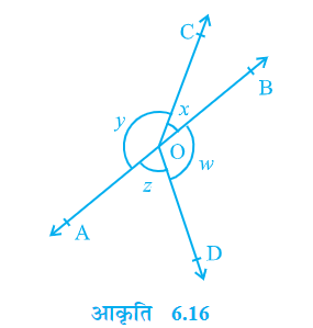 प्रश्न 4. आकृति 6.4 में, यदि x + y = w + z है,तो सिद्ध कीजिए कि AOB एक रेखा है।