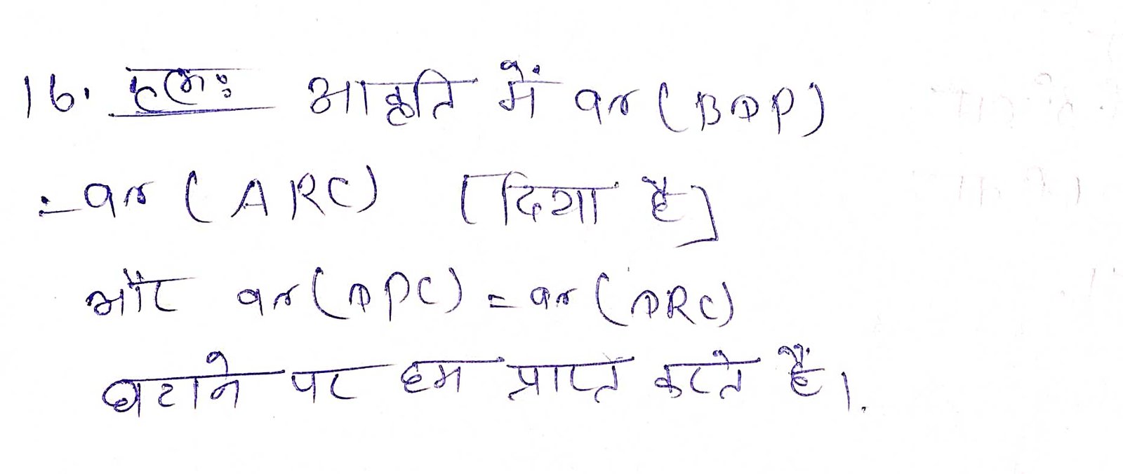 प्रश्न 16. आकृति में ar (∆DRC) = ar (∆DPC) है और ar (∆BDP) = ar (∆ARC) है। दर्शाइए कि दोनों चतुर्भुज ABCD और DCPR समलम्ब हैं।