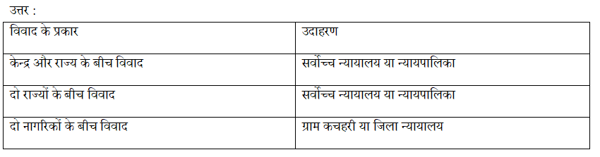 उत्तर – न्यायपालिका के कामों को मोटे तौर पर तीन भागों में बाँटा जा सकता है :